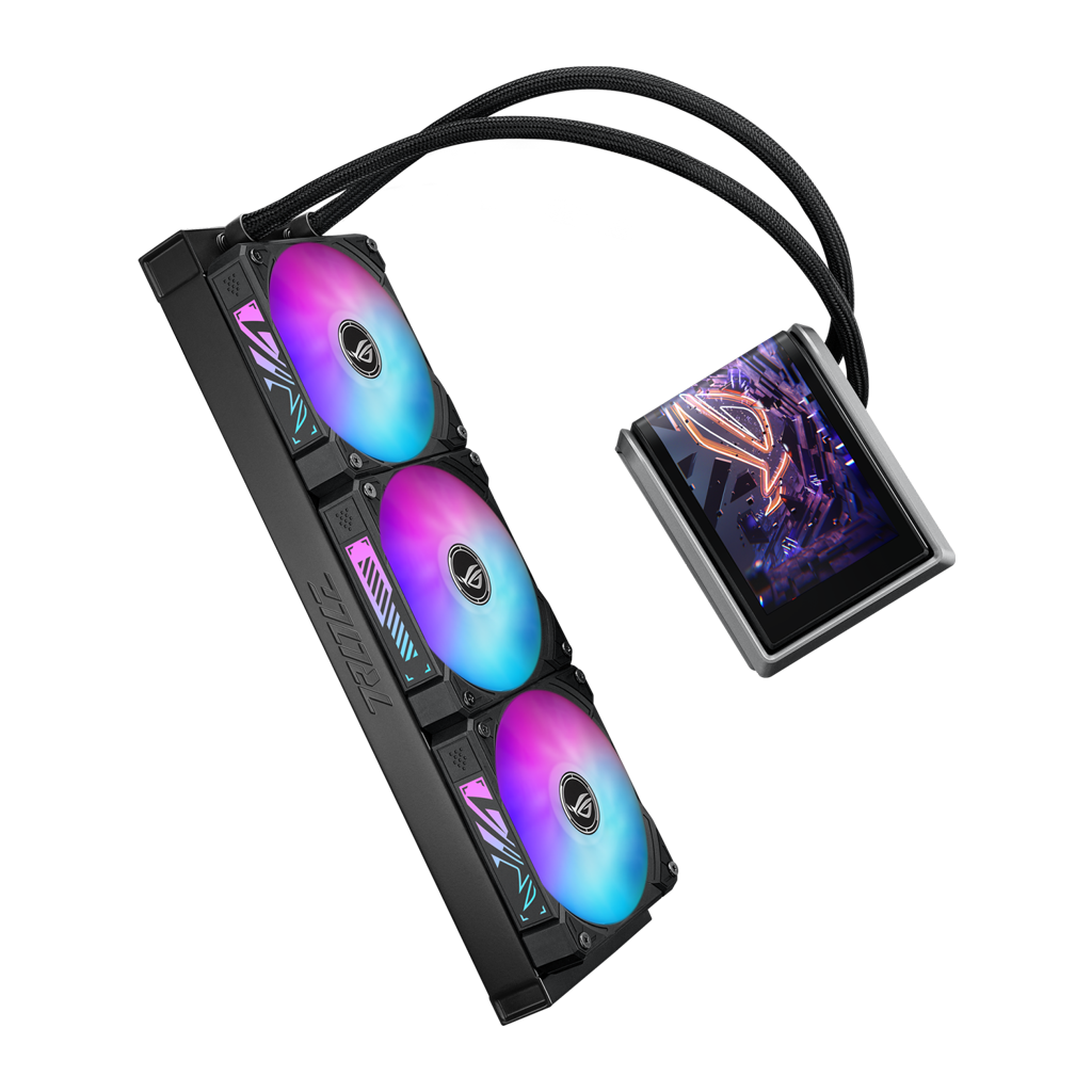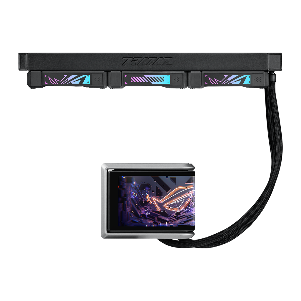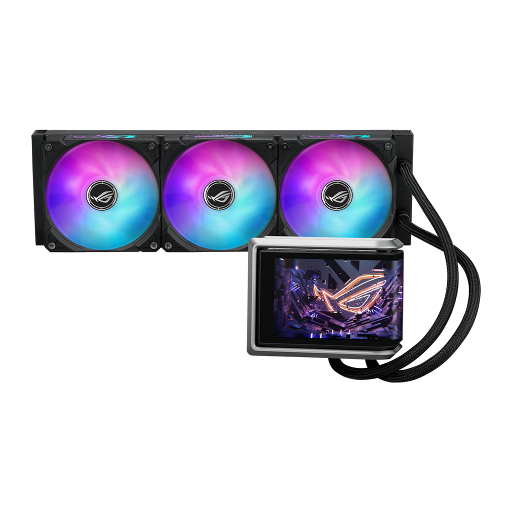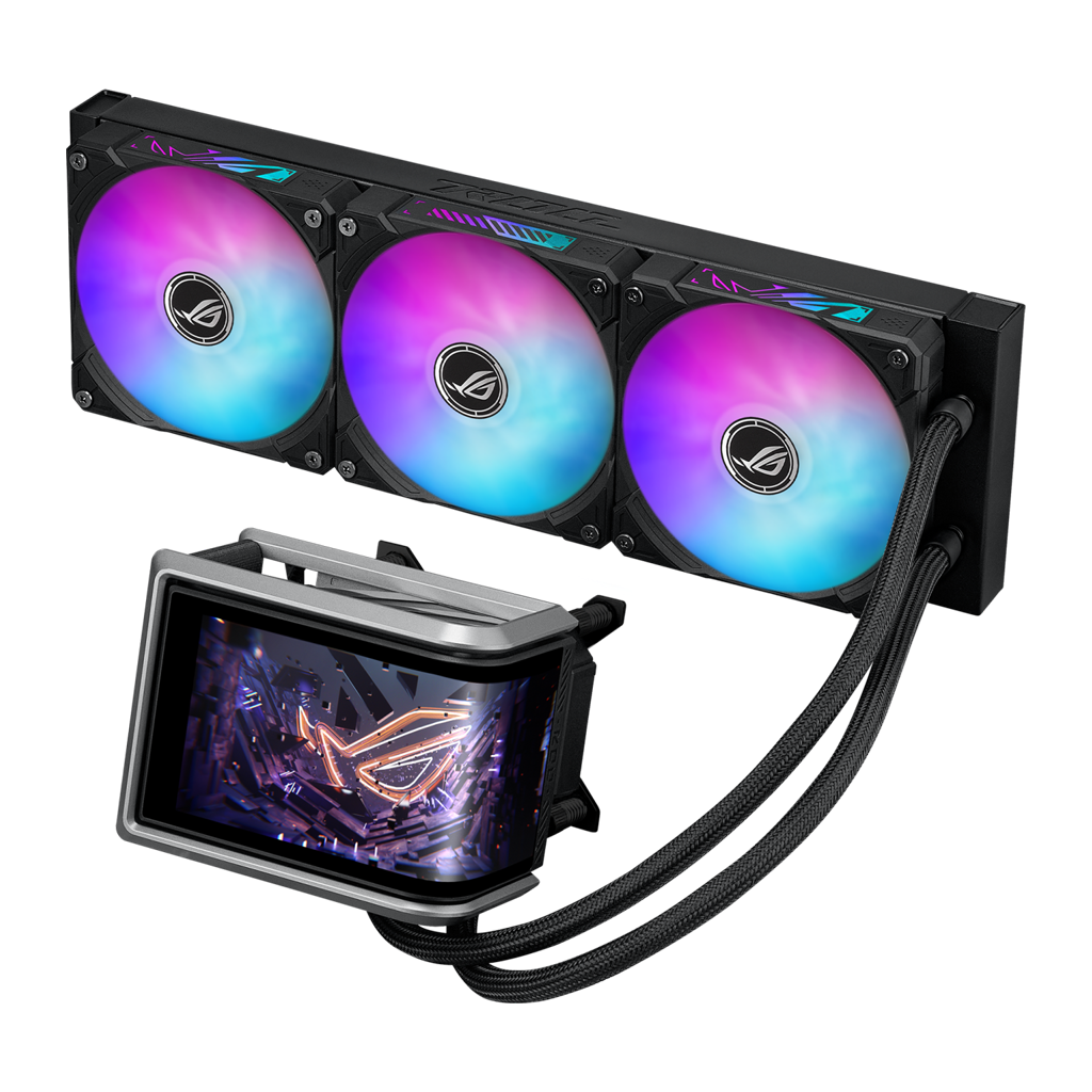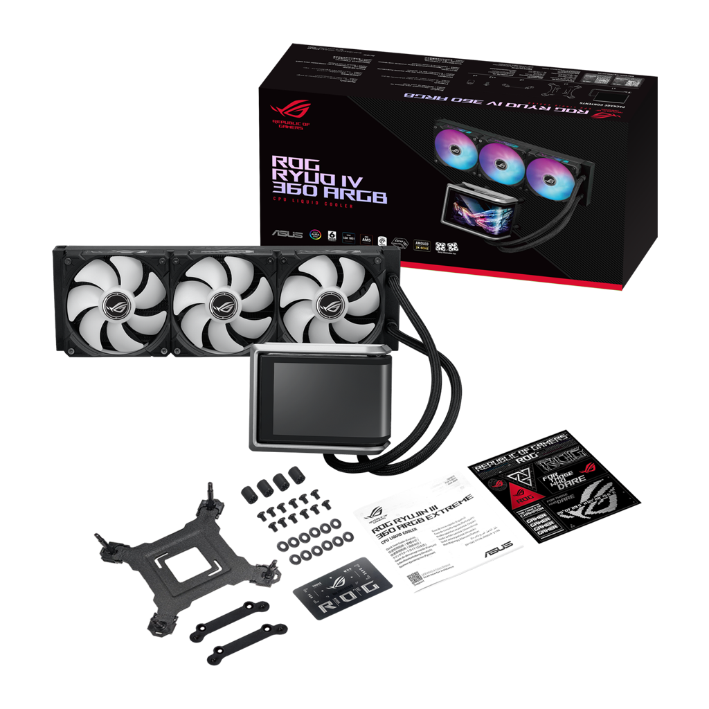 ROG Ryuo IV 360 ARGB er udstyret med en 6,67 tommer AMOLED -skærm i et innovativt buet design. Skærmen kan vise 3D-videoer, hardwareinformation i realtid eller dit eget indhold, og det hele styres nemt via den intuitive software. Køleydelsen leveres af den opgraderede Asetek Gen8 V2-pumpe, som er kombineret med ROG ARGB-blæsere for markant forbedret og stabil termisk ydeevne - selv til high-end CPU'er som AMD Ryzen™ 9000- og Intel® Core™ Ultra-serien.