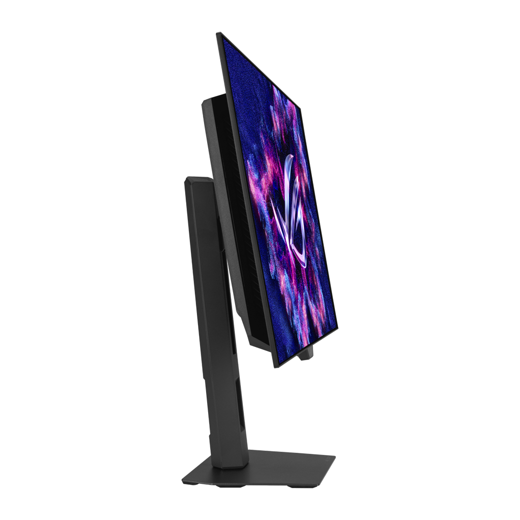 ROG Strix OLED XG27AQDMGR er udstyret med en ny kompakt stand, der er 30% mindre end på tidligere generationer af XG-skærme. Det frigiver ekstra plads til både dit keyboard og mus, så der er plads til endnu større armbevægelser. Standen kan både dreje, vippe, højdejusteres og pivoteres, så du kan finde den helt rigtige vinkel, der passer til dig og dit setup.