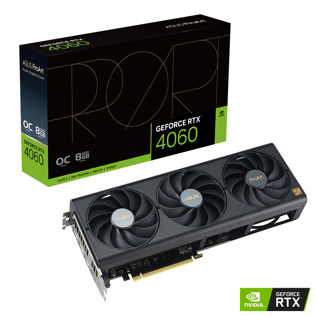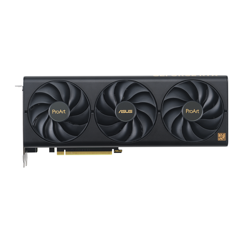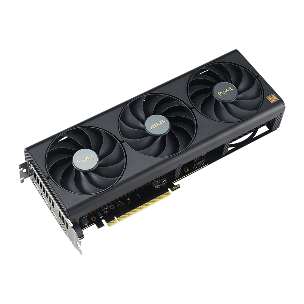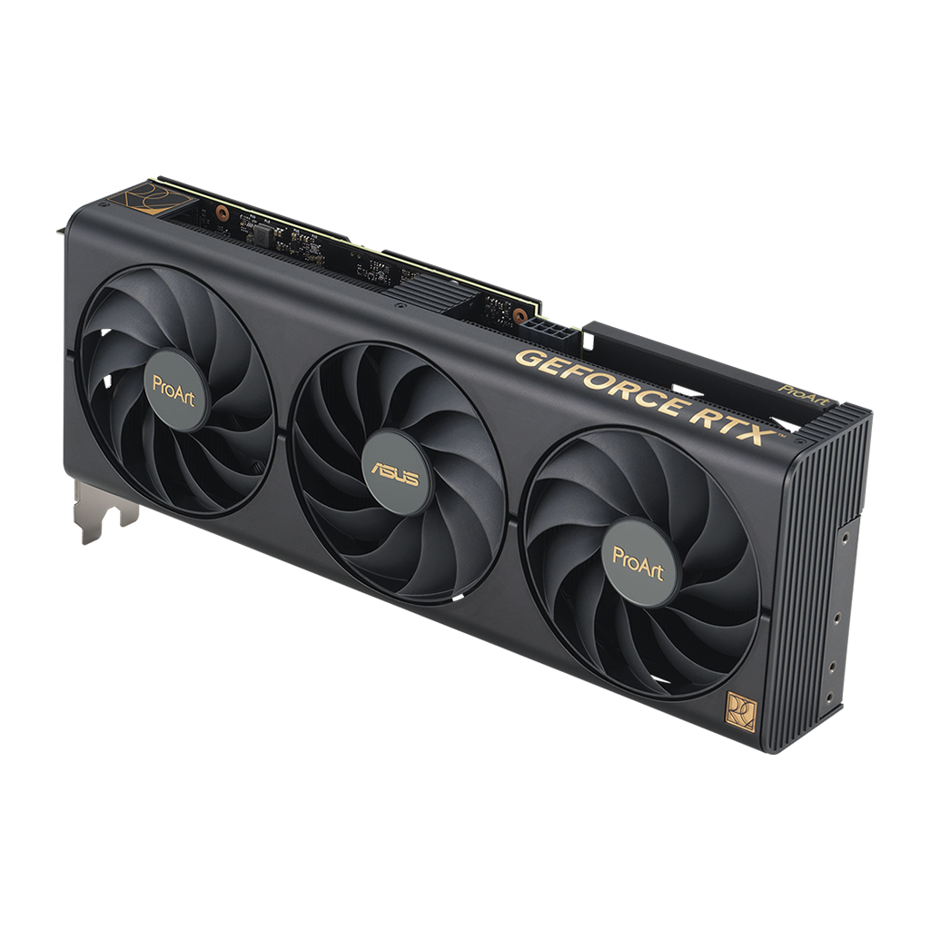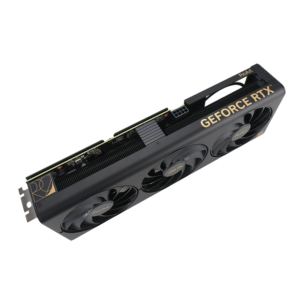 Heatpipes overfører effektivt varmen til en lamelrække, optimeret til luftstrømmen fra Axial-tech-blæserne. Hele systemet er skabt i en elegant, sort farve, der matcher ProArt-temaet.