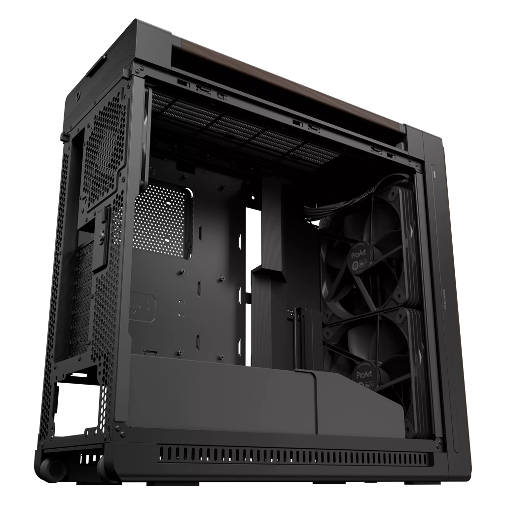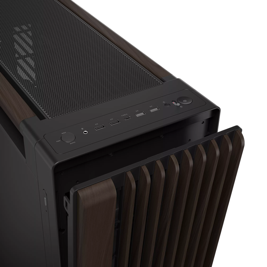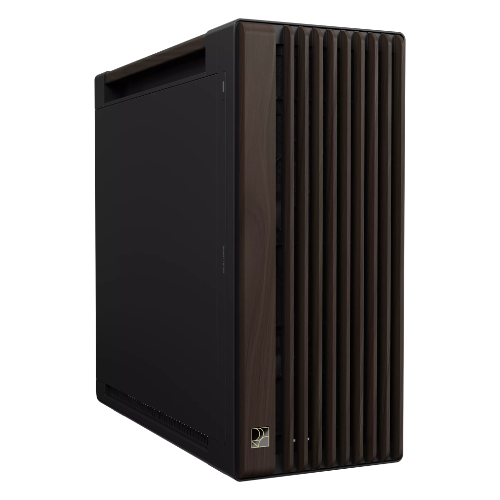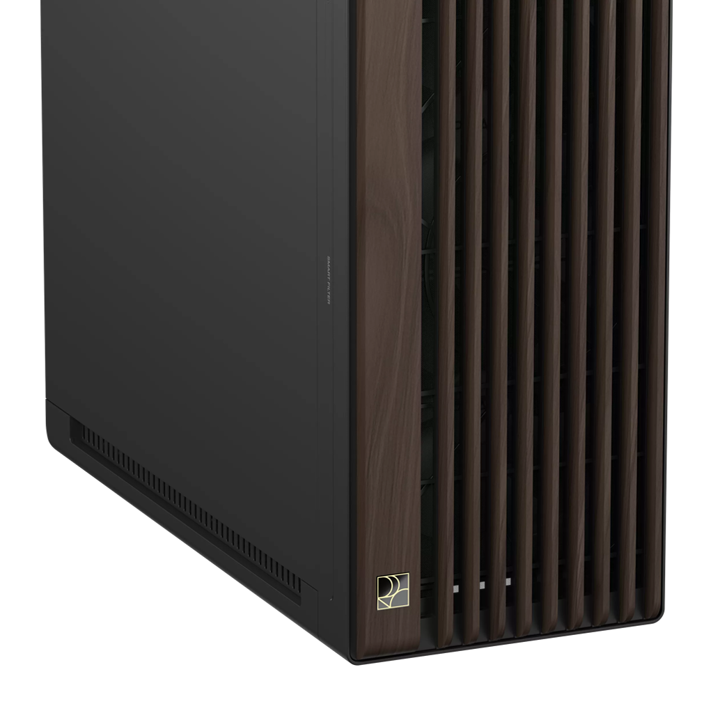 Valnøddetræ er specielt udvalgt til kabinettet på grund af dets luksuriøse åretegning. For at sikre holdbarhed og et elegant udtryk, gennemgår træet en helt særlig proces, startende med en termobehandling, der beskytter træet mod insekter, fugt og varme. Derefter formes og slibes træet, og til sidst fremhæver en to-trinsbehandling den unikke farve med en blank finish. Valnøddetræet, der er brugt i dette kabinet, er certificeret af Forest Stewardship Council® (FSC®), hvilket gør det til et fremragende valg for stilbevidste tech-entusiaster, der også sætter pris på bæredygtighed.